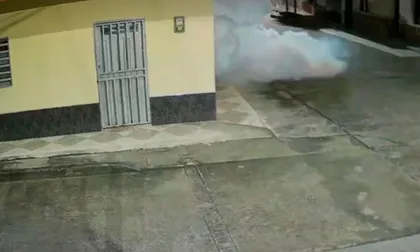 El video muestra el momento exacto en el que sujetos llegan a lugar en una moto, dejan abandonado el explosivo junto a la puerta de la vivienda y lo activan antes de huir en el automotor.